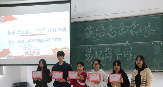 为激发大学生创造性,增强语言表达能力,使他们感受不一样的背单词乐趣,体会英语语言魅力,信息工程学院于11月22日和11月29日在鸿文楼201分别举办“英语念念念,‘易’起背单词”活动的初赛和决赛环节。