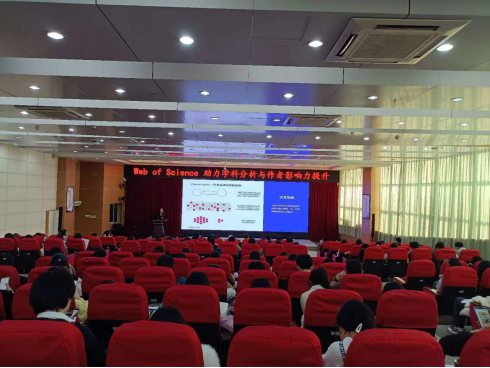 12月14日下午,图书馆、发规处(学科建设与研究生处)联合举办《Web of Science助力学科分析与作者影响力提升》讲座。人事处、教务处、科技处(社科处)、发规处(学科建设与研究生处)、各二级学院学科专业带头人、教学秘书、科研秘书及一线教师、学生等两百余人参加了本次讲座。