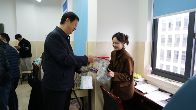 寒冬送暖,研途助力。2024年全国硕士研究生入学考试在即,为鼓舞学生考研士气,增强学生考研信心,12月18日下午,校党委副书记李莉星、副校长吴龙带领教务处、学工处、学科建设与研究生处一行深入二级学院看望、慰问考研同学。