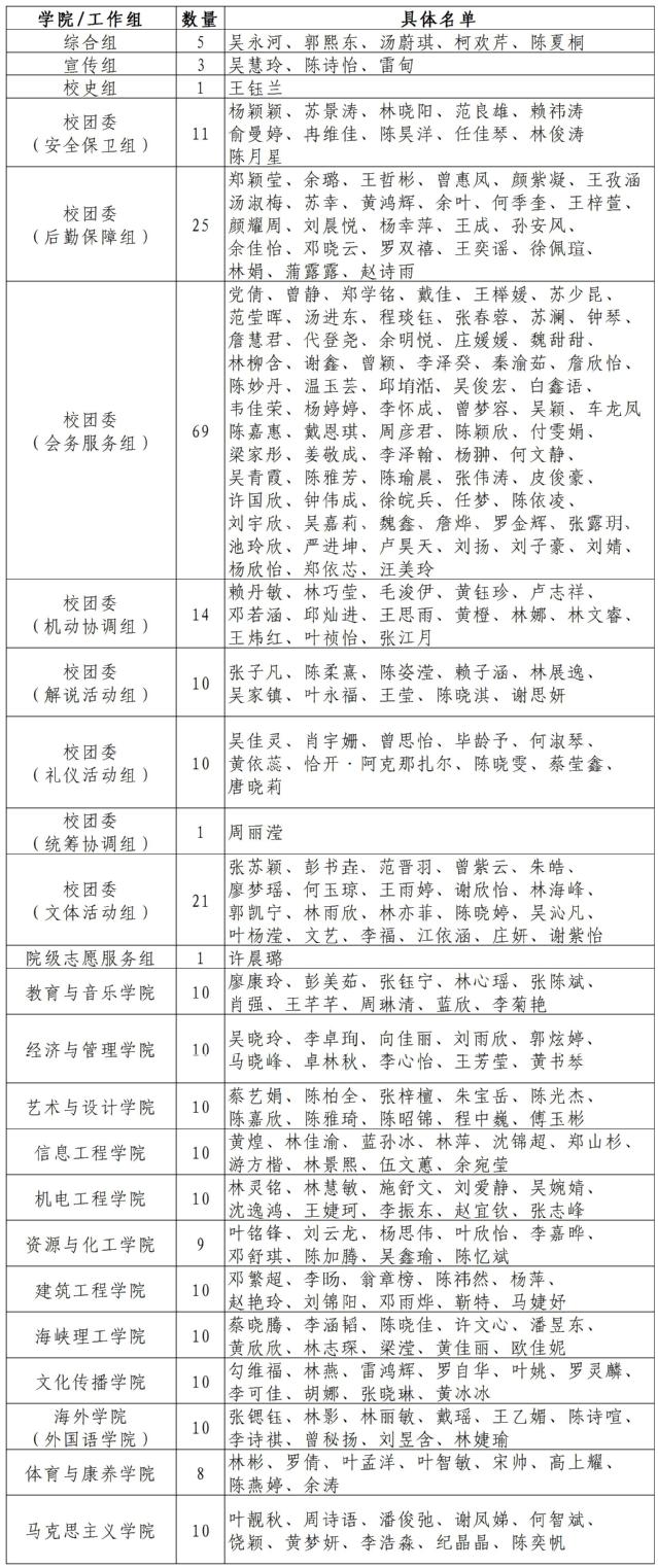 王子坚 王海云 王婷 邓翼强 占江平 刘玉芳 刘诗怡 刘建朝 池毓斌 汤伟红 许明春 李彬 李鸿 杨晨皓 肖旺釧 肖香梅 肖振家 肖爱清 吴志豪 吴爱娣 邱贞发 何秀清 余丰梅 余姝媛 汪莉丽 沈永炎 张宇涛 张茂华 陈艺琛 陈艳权 陈朝昌 陈慧玲 茅文睿 林志兴 林青首 林国进 卓增蓉 罗春霖 郑时鑑 郑博洋 郑薇 钟艳 黄妙娟 黄景旺 龚兵丽 龚美玉 龚榕容 康红霞 康志亮 温桂林 谢永阳 赖光辉 廖梦晴