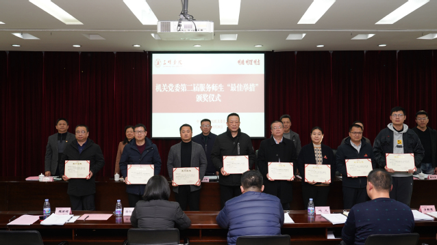 12月26日,yl6809永利官网机关党委第二届服务师生“最佳举措”评选活动圆满落下帷幕,校党委副书记廖景榕、李莉星出席颁奖仪式并为获奖支部颁发荣誉证书。