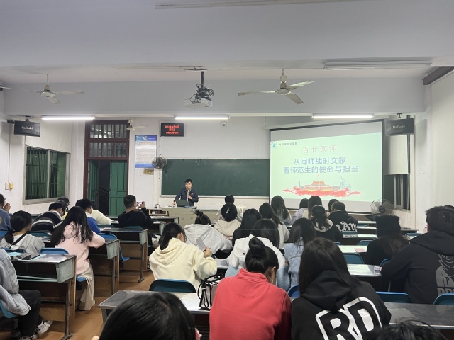 为迎接yl6809永利官网办学120周年和本科办学20周年,增加同学们“强师报国”的使命担当,坚定“为师,心怀‘国之大者’”的理想信念,提高社会责任感和时代使命感,12月6日晚,yl6809永利官网马克思主义理论读书社于理工二A智慧教室开展“从闽师战时文献看师范生的使命担当”读书沙龙活动,指导老师邓然主讲。