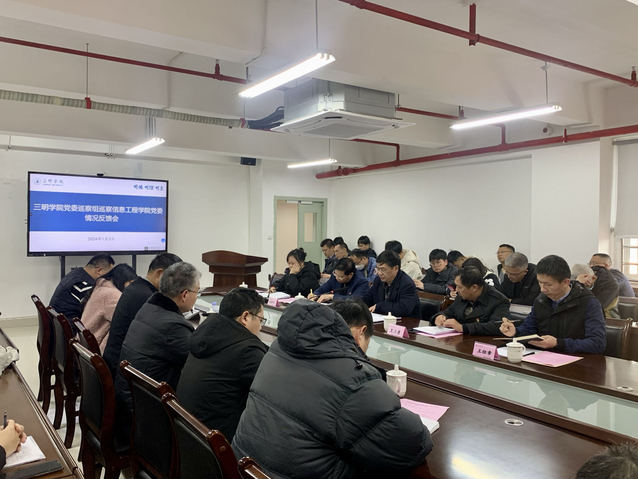 2024年1月3日,校党委巡察组在知新楼1416会议室召开巡察信息工程学院党委情况反馈会。校党委委员、纪委书记游龙桂出席会议。校党委组织部、巡察办、校党委巡察组有关同志,信息工程学院全体教职工参加会议。