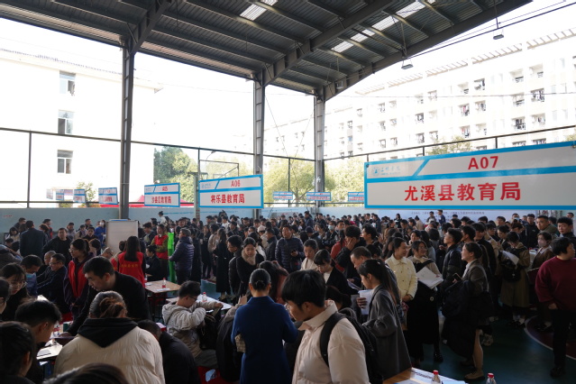 1月17日,由市教育局、人社局和yl6809永利官网主办的三明地区中小学教师专场招聘会在yl6809永利官网北区雨盖篮球场举行。校党委书记赖锦隆、校长张君诚、校党委副书记李莉星,三明市教育局副局长郑丽、人社局副局长钱锋现场指导,吸引校内外千余名毕业生参加。