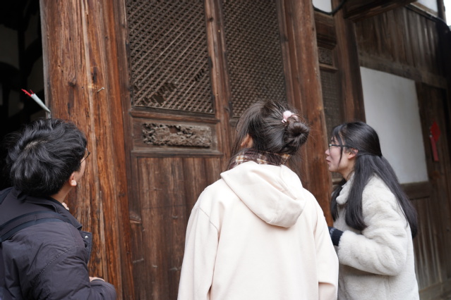 “山水天赖,文化古坊。”实践队与赖坊镇政府工作人员一同前往参观古民居,古民居是古时农耕文明的活化石,堪称闽西北地区古村落建筑的经典之作。从村口擎天巨伞般的千年古樟,到村落里巧夺天工的雕梁画栋;从耕读传家、父慈子孝的祖传家训,到寄托着先辈们精神依归的民俗活动.....实践队成员漫步古村小道,认真聆听赖坊的历史故事,领略“宗祠”“彩映庚”“翰林第”“来青”等四十多幢座明、清时期的古民居古村风采,感受百年村落的人文气息。