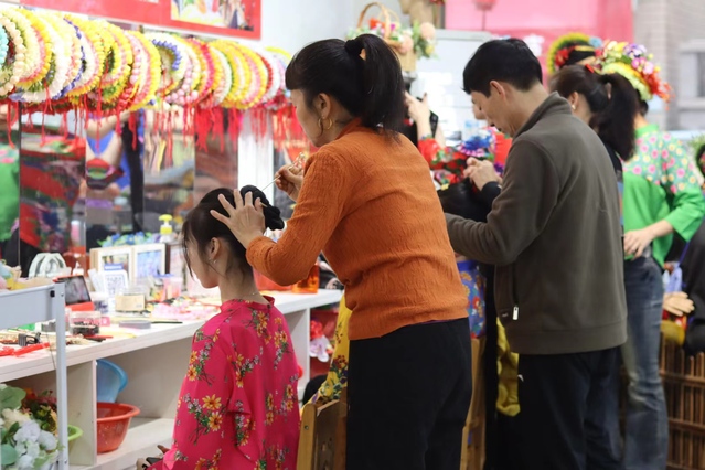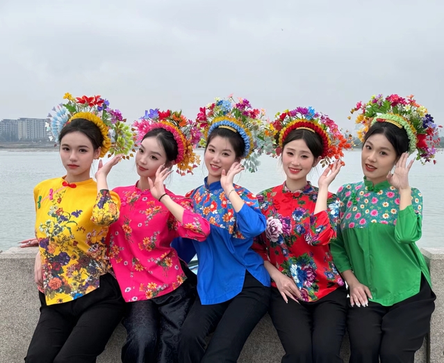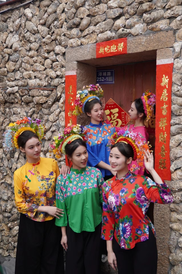随后,为更深入体悟蟳埔特色,队员们亲自体验了蟳埔服饰和簪花,不仅感受到了手艺人付出的努力和心血,还体悟到了簪花这项技艺的精神内涵和人文价值。