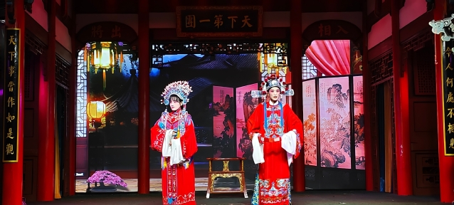 随后,实践队员来到尚书第附近的梅林戏传承中心,沉浸式观看梅林戏。泰宁的梅林戏,是中原文化与闽越古文化结合的艺术标本。其唱腔优美,行当齐全,唱做念打的表演模式深受观众喜爱。大家通过现场观看并了解梅林戏背后的历史和文化故事,深切地领略到非遗传统戏曲深厚的人文底蕴与艺术价值。同时,实践队成员还向游客发放非遗戏曲传承现状调查问卷,进行访谈,深入考察探究优秀传统戏曲传承现状。