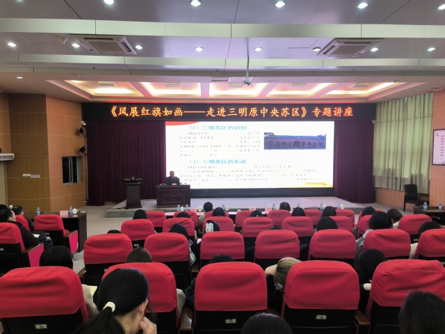 签约仪式后,伍旭东从什么是红色文化、红色文化的经典代表——三明原中央苏区以及如何构建“风展红旗如画”三明红色文化的心理地标等,全面介绍了三明作为中央苏区核心区的历史发展进程,让在场师生深刻认识红色政权来之不易、新中国来之不易、中国特色社会主义来之不易,进一步厚植爱党爱国情怀。