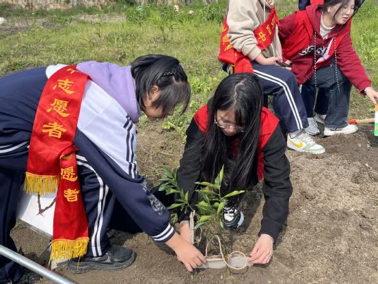 实践环节中,所有同学被分成若干小组,每组都配备了专业的园艺工具和树苗,大家热情高涨、互相协作、互相帮助,充分展现了“团结友爱、助人为乐”的精神品质。大家还一起清理了基地内的垃圾,美化了周边环境,用实际行动践行了“奉献、友爱、互助、进步”的志愿服务精神。
