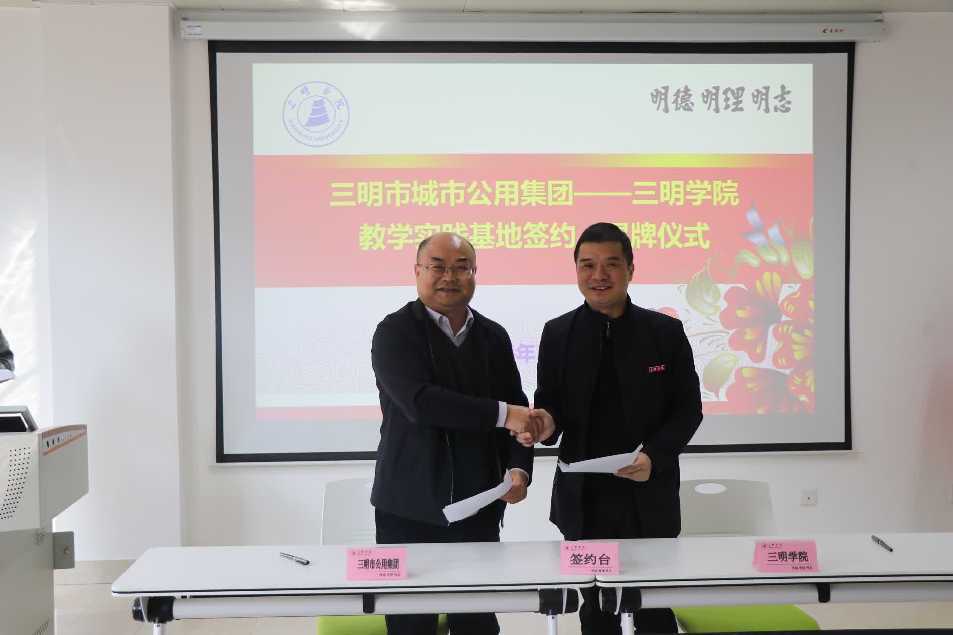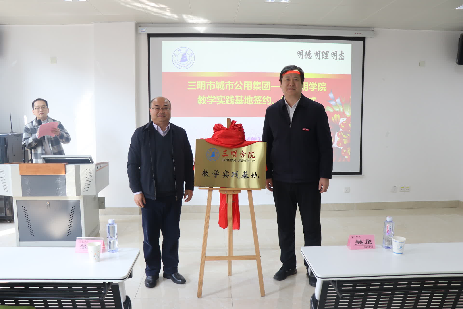 座谈会后,双方举办了教学实践基地签约、揭牌仪式,邹金水董事长与李奇勇院长现场签订教学实践基地共建协议,邹金水董事长与吴龙副校长为教学实践基地揭牌。最后,邹金水董事长为与会同学们介绍了企业基本情况,并与参会学生热情交流,对同学们到集团实习、工作发出诚挚邀请。