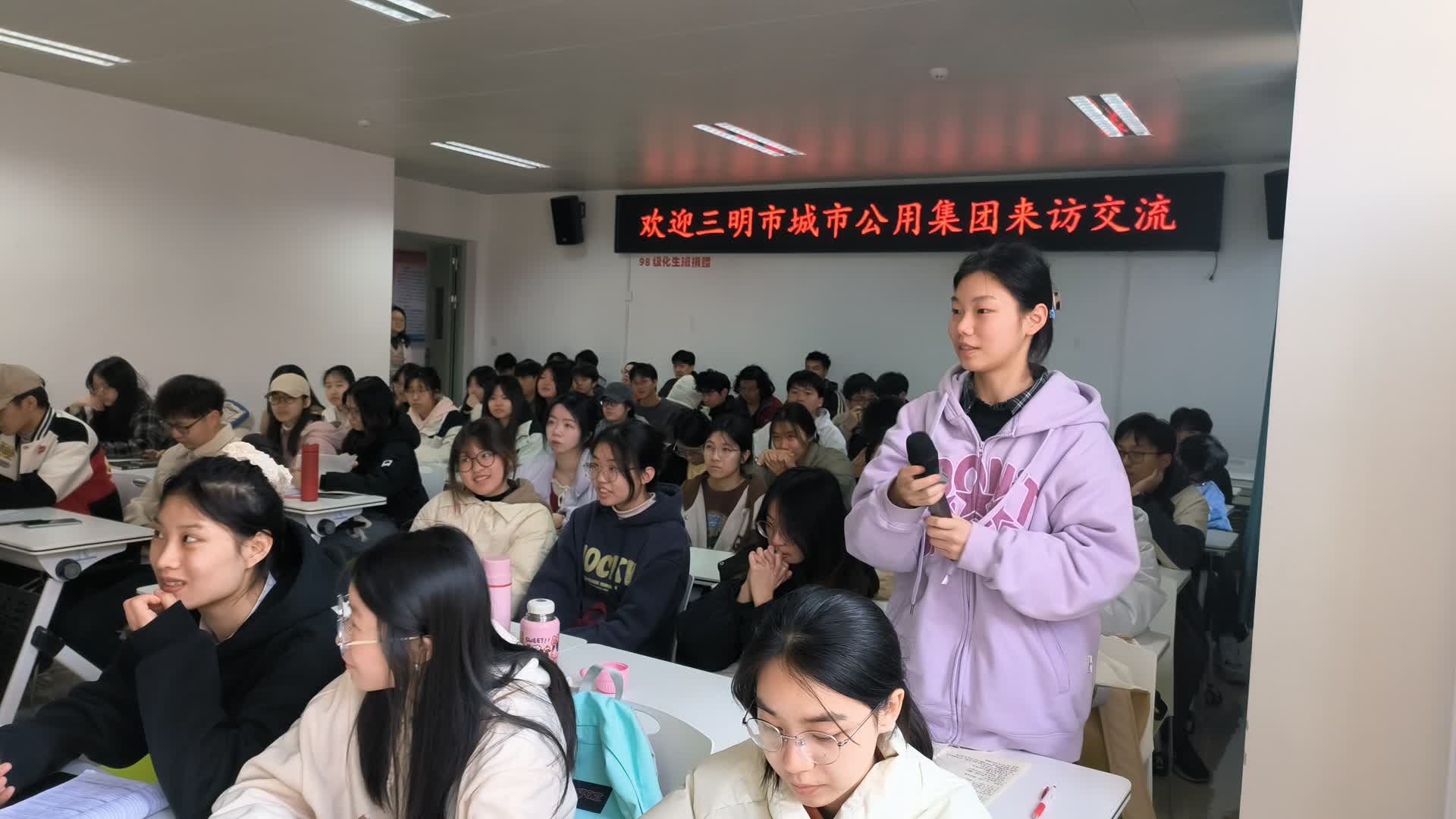 座谈会上,与会人员观看了资化学院宣传片了解了学院基本情况,李奇勇院长补充介绍了学院学科专业建设布局、师资队伍建设、人才培养、服务地方等方面工作取得的成效,针对三明市城市公用集团急需的对口专业人才推介、实习实践合作等方面内容进行了具体阐述。邹金水董事长介绍了三明市城市公用集团近年来的发展情况、主要经营领域、未来规划等,希望以本次交流为契机进一步深化校企合作,在实践基地共建、人才培养、科研攻关等方面有新的突破,共促美丽三明建设。
