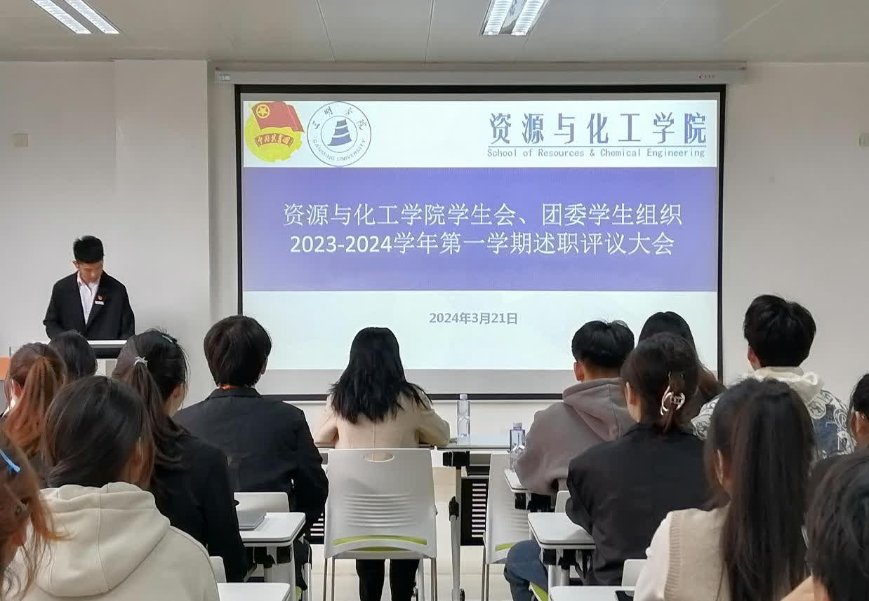 此次述职大会全面总结了资源与化工学院学生组织在上一学期的工作情况与成果经验,为下一步提高工作效率和更好地服务同学打下坚实基础。