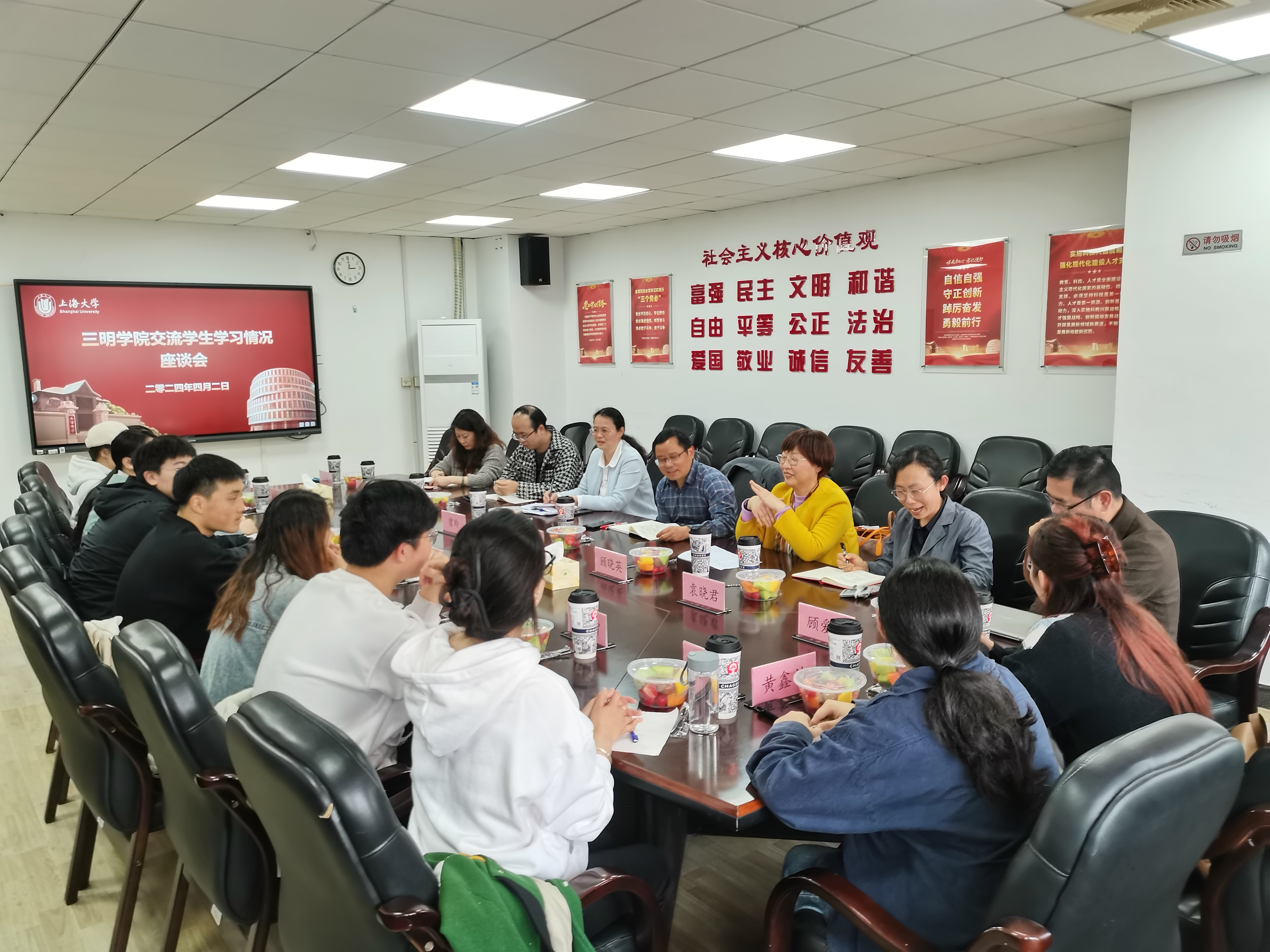 4月2日下午,我校赴上海大学交流学生学习情况反馈座谈会在上海大学宝山校区A楼404顺利举行。上海大学学生工作办公室主任、武装部部长、本科生书院管理中心主任孟祥栋,上海大学教务部副部长顾晓英、教学运行处处长袁晓君、科长徐健,信息化工作办公室副主任顾爱军,学工办副主任韩晶;yl6809永利官网交流学生临时班主任曾玲、副班主任任士钊,学生代表参加了座谈会。会议由孟祥栋主任主持。