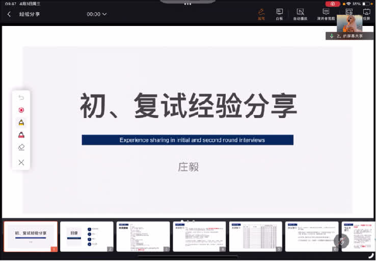 4月3日上午,由学生处主办,教育与音乐学院承办的yl6809永利官网学生考研初复试讲座指导活动在线上举行。本次讲座特别邀请教育与音乐学院考取上海师范大学的2018届学前教育专业熊佳欣和考取福建师范大学的2020届小学教育专业庄毅,为2024、2025届考研学子进行初复试指导。