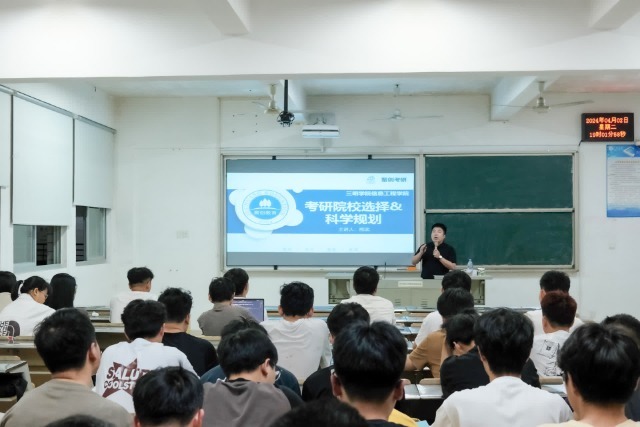 为助力我院2025届毕业生能更早更好地规划考研之路,系统了解考研知识,引导同学们科学择校、备考,信息工程学院于4月2日晚在博学楼206举办2025届毕业生考研指导讲座。本次活动特邀聚创考研规划培训老师熊武主讲,近100名有意向考研的学子参与。