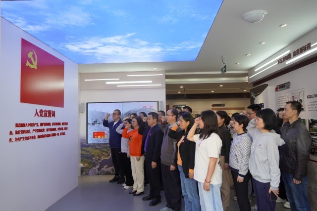 师生党员参观了官昌水库史迹馆,了解了共产党人“集中力量办大事”“战天战地克难关”的水库建设历史故事。一幅幅珍贵的历史照片、一组组振奋人心的成果数据,无不诠释着那段各民族艰苦拼搏的辉煌岁月,全面彰显出“实说实干,敢拼敢上”沙县精神和“自力更生,艰苦创业”建库精神,让全体党员接受了一次深刻的精神洗礼,更加坚定了铸牢中华民族共同体意识理想信念,锤炼了党性修养。全体党员面对党旗,队列整齐,右手握拳,再次重温最神圣、最庄严的入党宣誓。