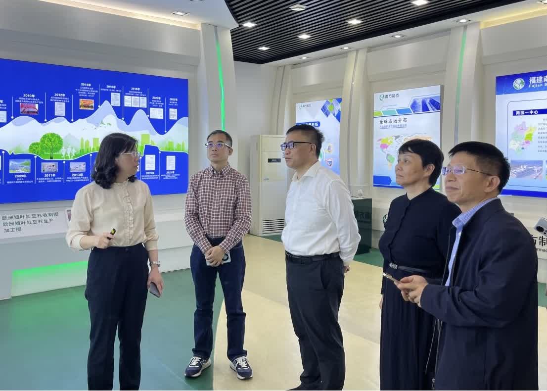 与会人员还参观了福建省南方制药股份有限公司展厅,听取公司负责人介绍企业发展历程、人才团队、产品研发、市场销售、产业链延伸等情况。
