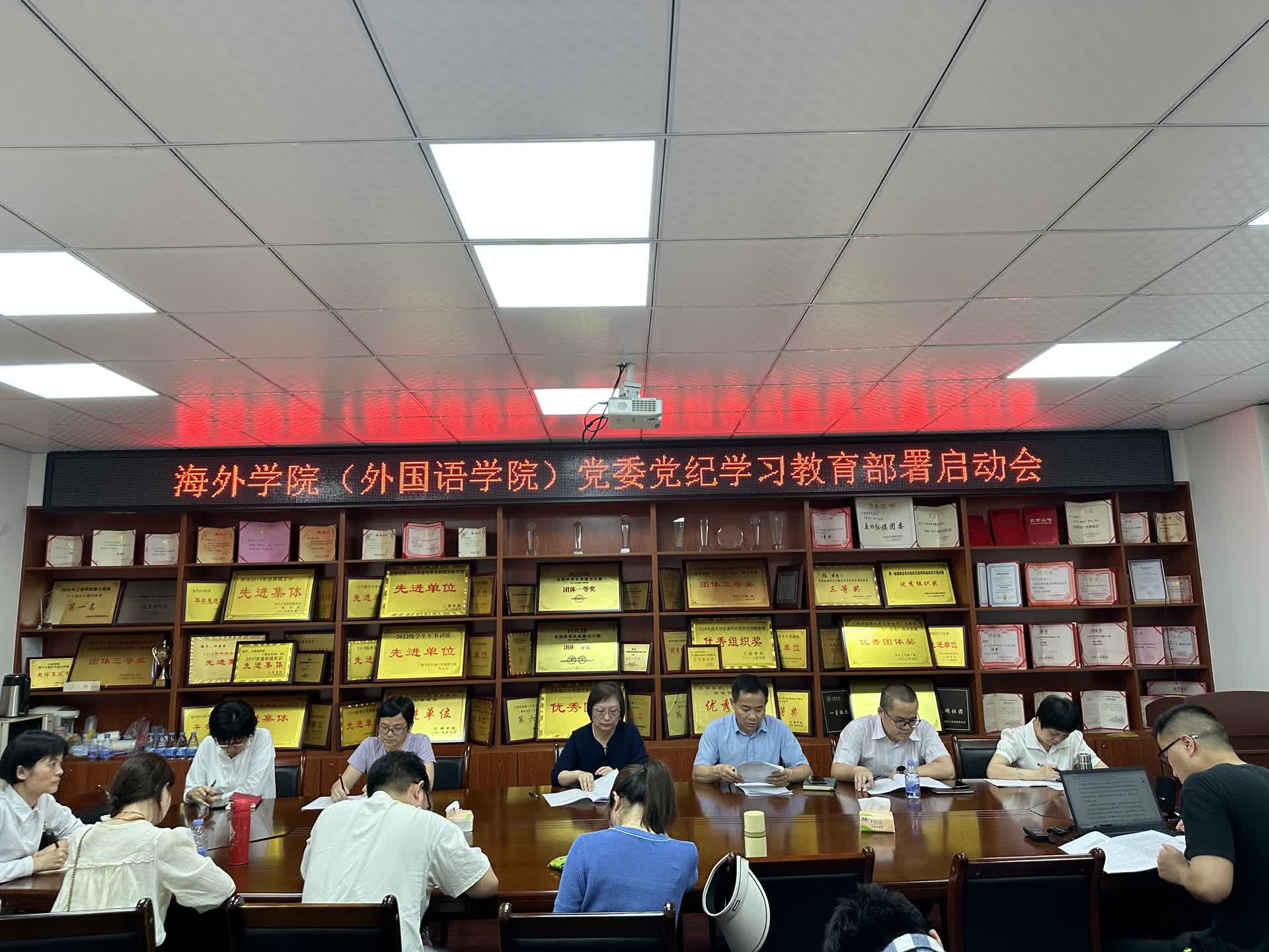 4月16日,海外学院(外国语学院)召开党委会(扩大)会议暨党纪学习教育部署启动会,传达学习习近平总书记关于开展党纪学习教育的重要讲话和重要指示精神、中央党的建设工作领导小组会议精神、省委常委会会议暨党的建设工作领导小组会议精神以及校党委会(扩大)会议暨党的建设工作领导小组会议精神。学院对照《关于在全校党员中开展党纪学习教育的工作方案》的具体要求,研究部署学院党纪学习教育工作,学院领导班子、党委委员、党委组织员、各科室(系)负责人、师生党支部书记参加。