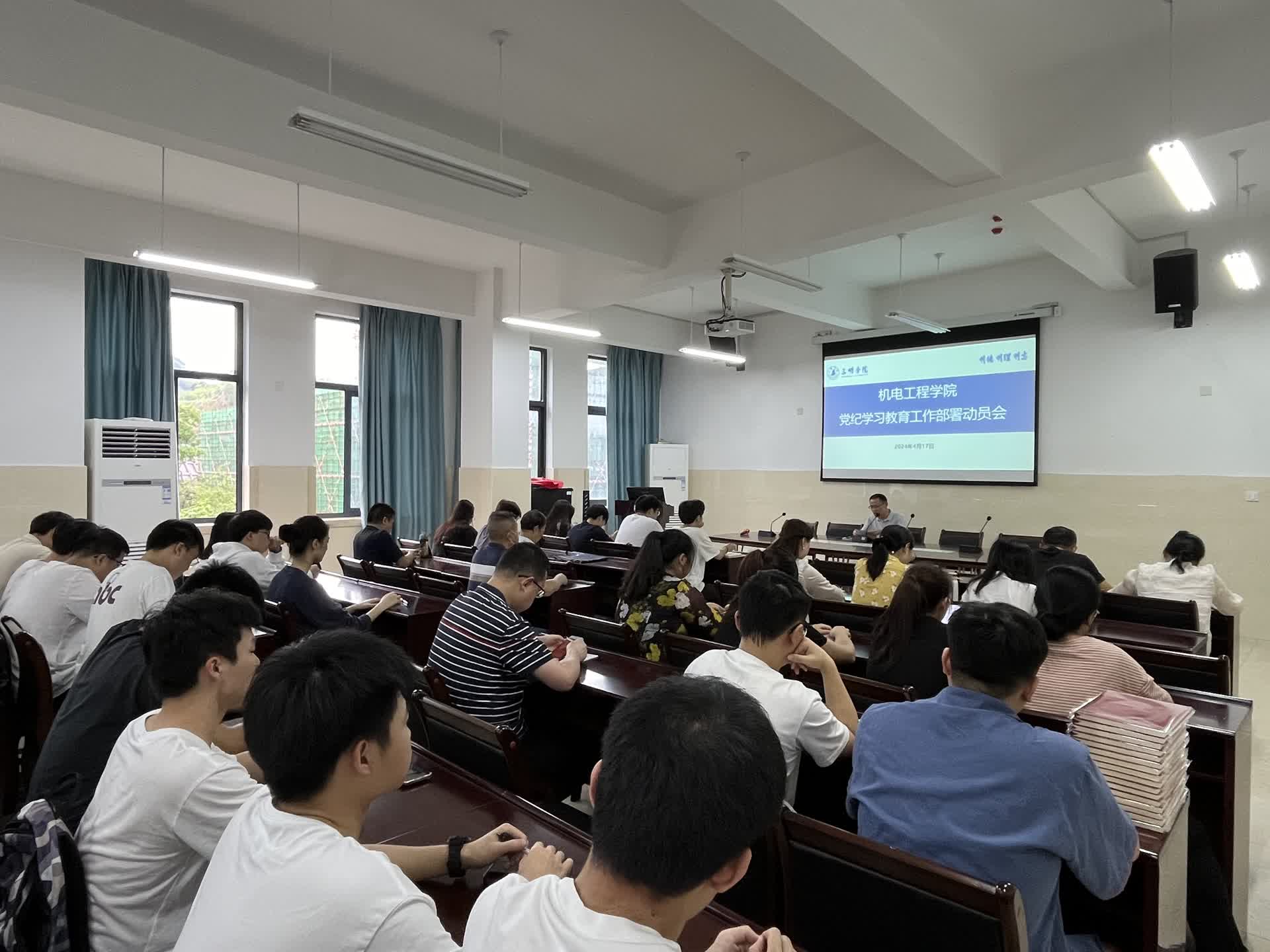 4月17日下午,机电工程学院在工科楼C603召开党纪学习教育工作部署动员会。全体教师党员、在校学生党员参加会议,会议由学院党委副书记陈俊树主持。