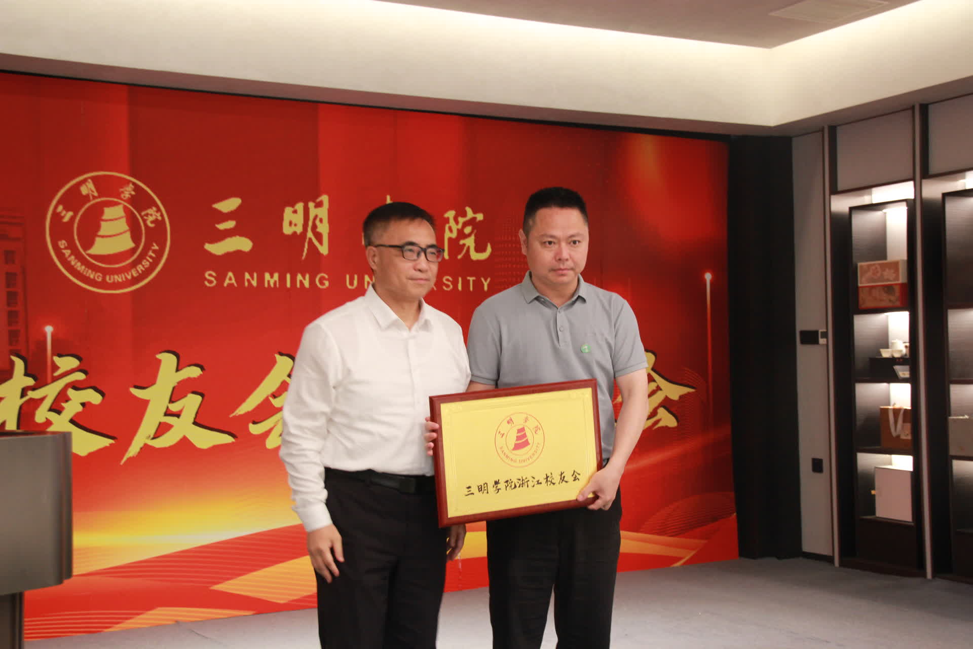 1998级企业管理专业校友王新腾当选为会长,2010级企业管理专业许广强当选为副会长兼秘书长。张君诚校长为浙江校友会授牌,廖景榕副书记为第一届机构成员颁发聘书。