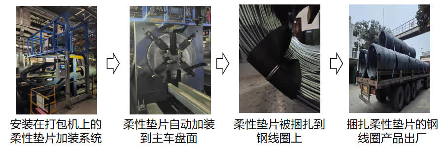 该系统基于机器视觉的智能状态监控系统,在不改变打包机原有生产工艺和节奏的前提下,设计了高效的柔性保护垫层拾取、脱离机构,以及垫层储料、送料机构,实现了13秒内同步添加8片保护垫层,消除了打包过程对钢线圈的勒伤划痕,提高了产品质量。同时,为三钢高线厂生产线进行优化升级提供智能化支撑,实现无人值守,消除安全隐患,助力企业实现减员增效。