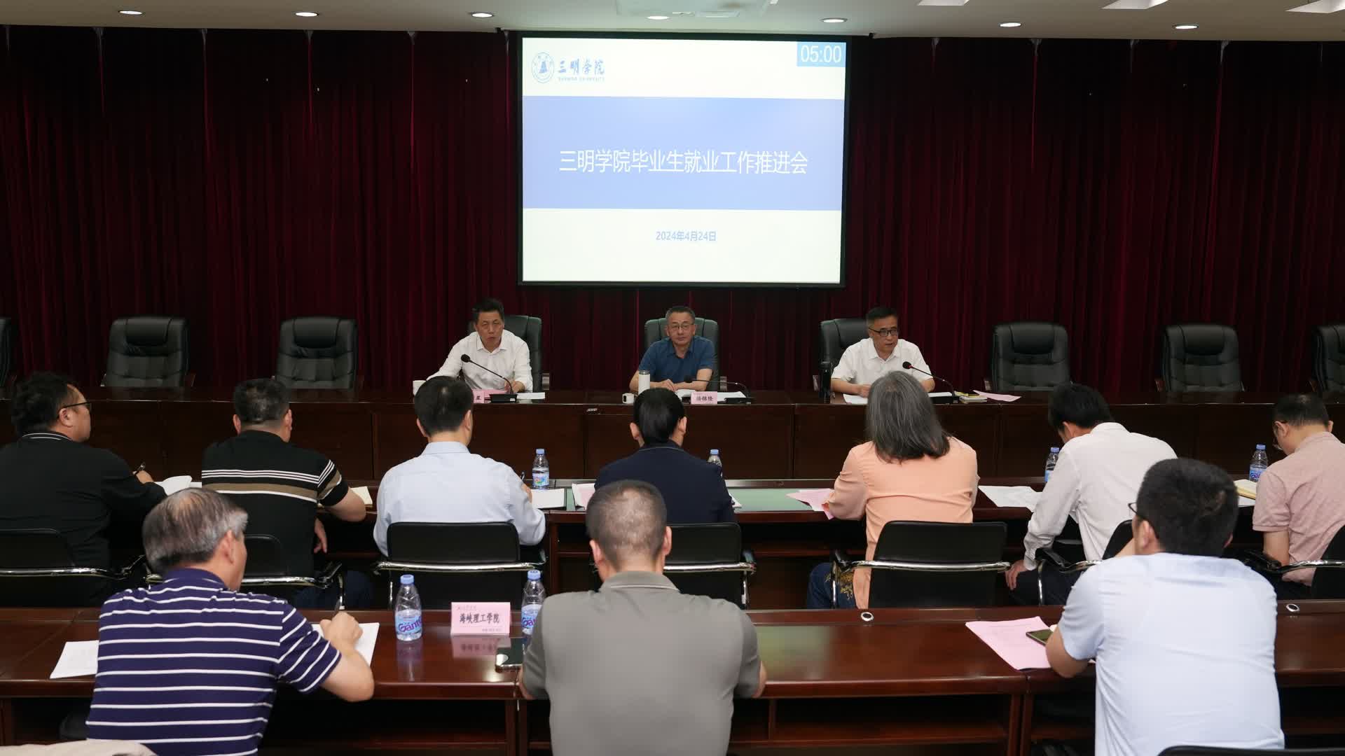 4月24日下午,yl6809永利官网在行政楼八楼会议室召开2024届毕业生就业工作推进会。校党委书记赖锦隆,校长张君诚,校党委副书记李莉星出席会议。