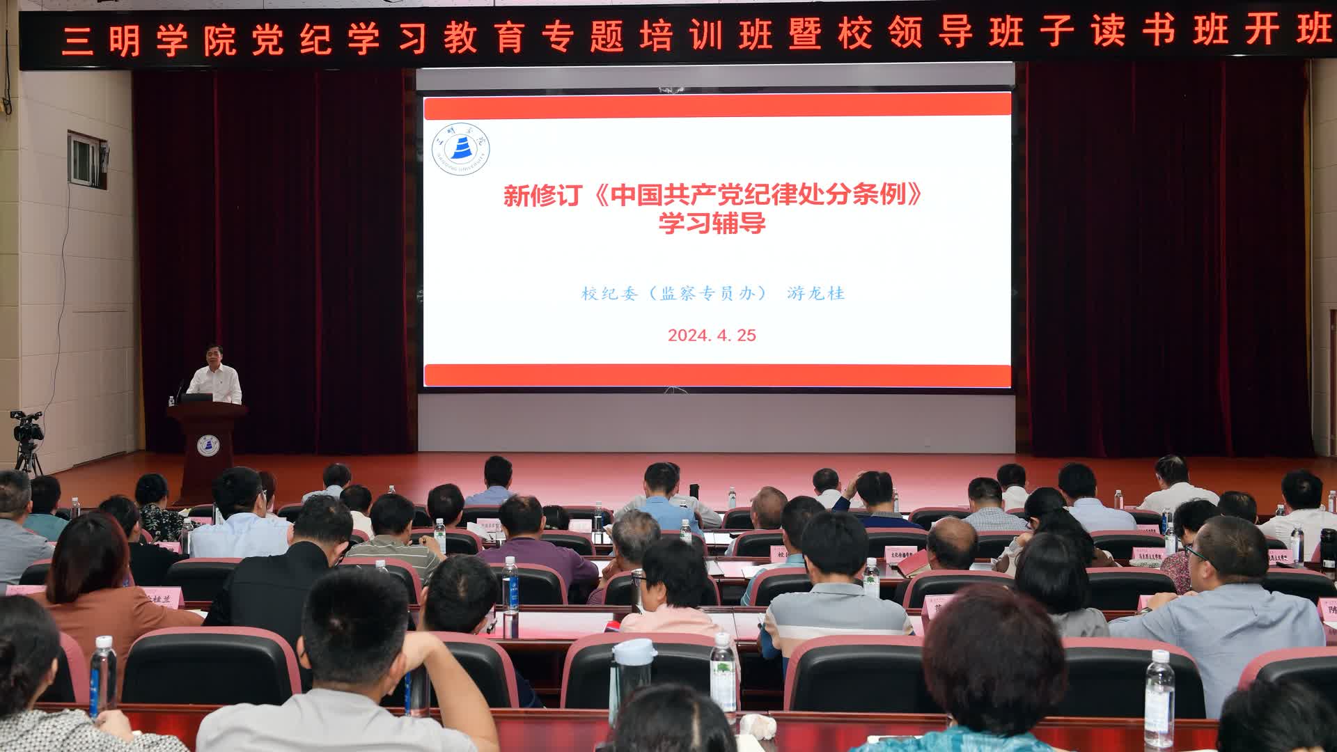 开班式上,校党委委员、纪委书记游龙桂以《新修订<中国共产党纪律处分条例>学习辅导》为题,从条例修订的历史沿革、主要内容、以及贯彻执行等方面作了详细解读并提出要求,进一步教育引导师生党员干部该做什么、不该做什么,能做什么、不能做什么,深化对《条例》的理解运用,切实做到把他律要求内化为自觉行动,知敬畏、存戒惧、守底线。