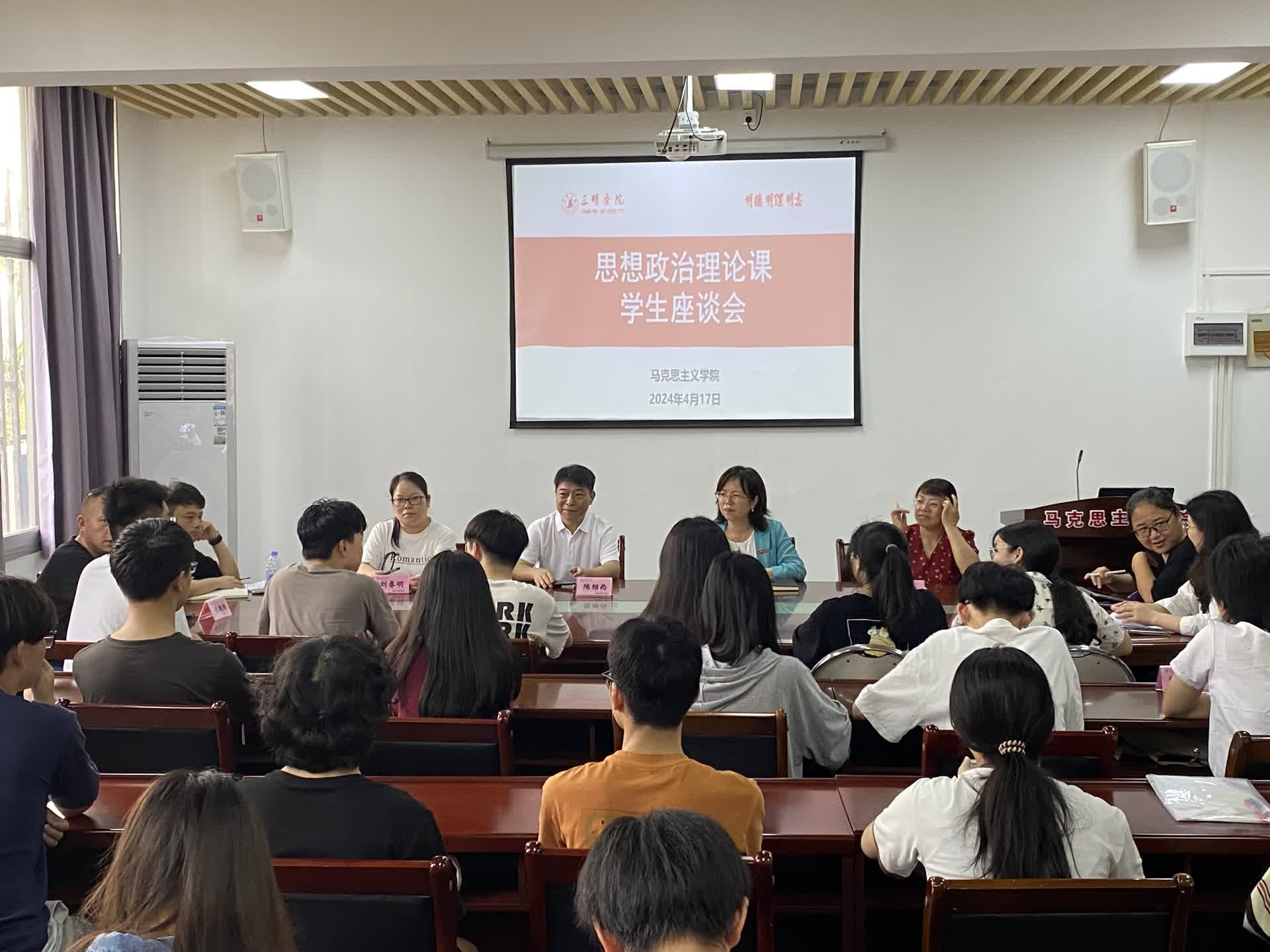 为深入了解学生对思想政治理论课的学习情况,增强教学的针对性和实效性,切实推进思想政治理论课质量提升,不断深化思想政治理论课改革创新工作,4月17日下午,马克思主义学院在明德楼二306会议室召开思想政治理论课学生座谈会。会议由徐桂兰副院长主持,各门思政课必修课教研室主任、思政课教师代表以及30多名学生代表参加。