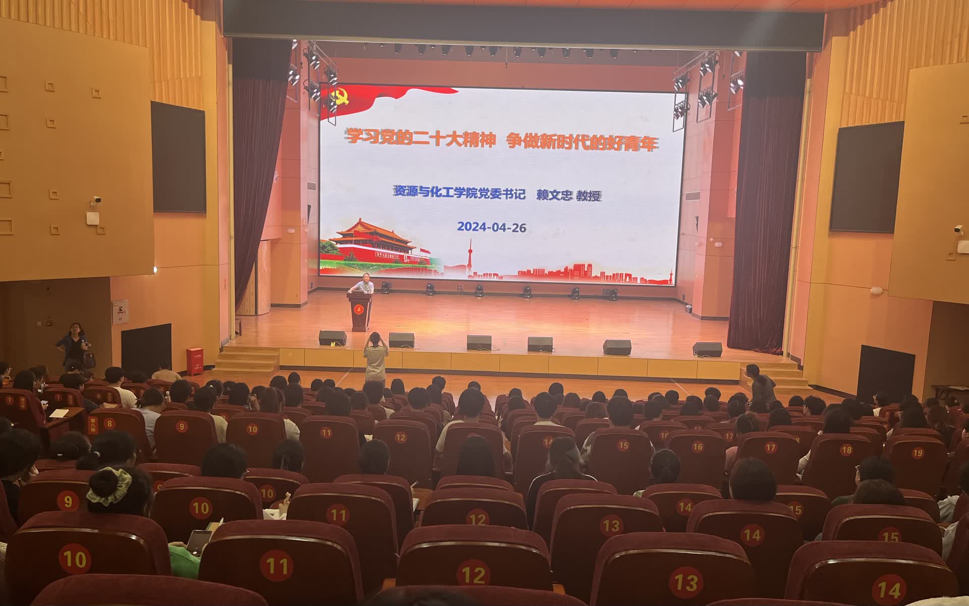 开班仪式后,资源与化工学院党委书记赖文忠教授为全体学员作《学习党的二十大精神,争做新时代的好青年》专题党课。赖文忠围绕“党的二十大会议简况及主要成果”“二十大报告的新观点新论断新思想新战略以及新征程新使命”“争做新时代的好青年”三个方面展开阐述,为大家讲授了一堂内容丰富的专题党课。