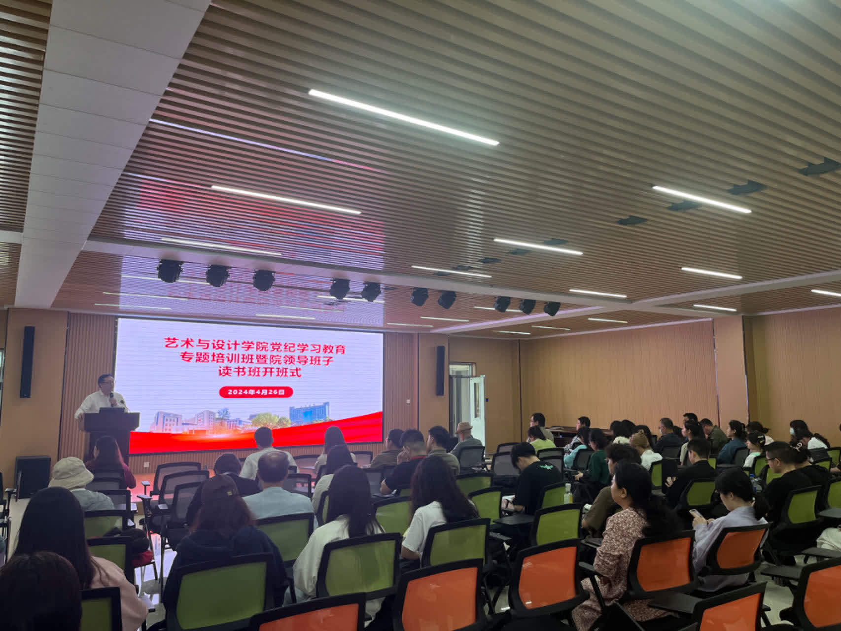 4月26日上午,艺术与设计学院于艺术楼345会议室举办党纪学习教育专题培训班暨院领导班子读书班开班式。艺术与设计学院党委书记廖响华作开班讲话,全体师生党员参加会议。开班仪式由学院党委委员、副院长信玉峰主持。