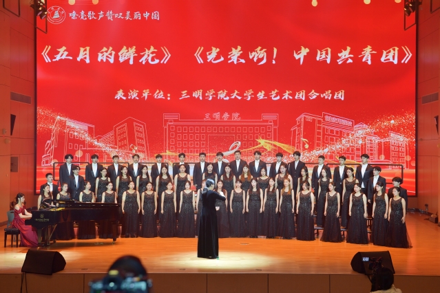如何发挥音乐思政课育人作用?教育与音乐学院党委书记伍荣生给出了解答,“我们通过‘音乐+思政’的形式,把党的发展历史和民族奋发精神融入到合唱曲目和节目表演当中,以思政内容赋予音乐表现的根与魂,切实做到以乐育人,既实现美育浸润目标,也提高了思政育人的实际效果。”