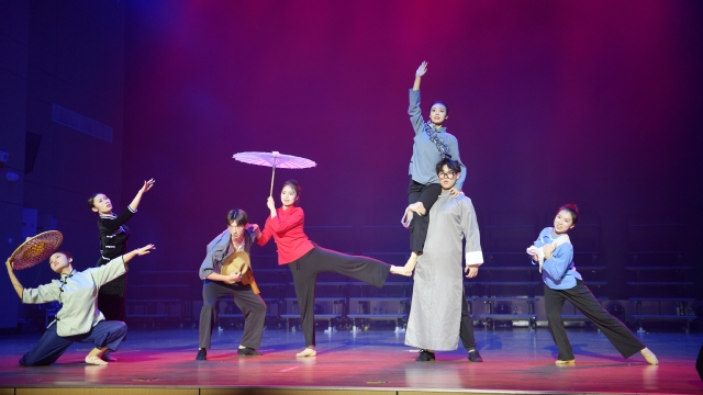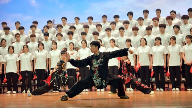 海外学院(外国语)学院选曲英文版《歌唱祖国》,文化传播学院将书法作品展示和朗诵搬上舞台,体育与康养学院则在演唱前进行武术、剑术的表演......通过在合唱中融入专业元素,实现舞台效果的立体化呈现。