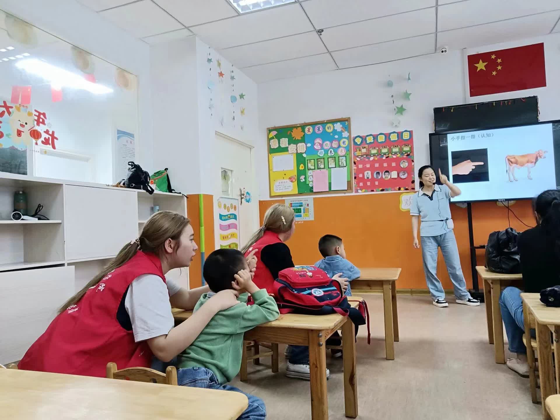 心语星特殊教育中心,是那些特殊儿童们温暖的家。他们虽然面临着与众不同的困难和挑战,但他们的笑容和纯真同样值得我们去珍惜和守护。作为社会公益事业的重要力量,萤火虫退役大学生队伍与红十字应急救护队,首次携手,共同肩负起这份关爱特殊儿童、帮助他们融入社会的重任。在这次志愿服务活动中,志愿者们以满腔热情投入到每一个环节中。在智力课上,他们协助老师,引导孩子们观看智力视频,维持课堂秩序,使课堂更加高效有序。在儿歌课上,他们坐在孩子们身后,轻轻地辅助他们舞动身体,用温暖的笑容和耐心的陪伴,让孩子们感受到家的温暖。在智力游戏课上,志愿者们陪伴孩子们走过独木桥,引导他们辨认和捡拾蔬菜,让孩子们在游戏中快乐地学习,锻炼身体。