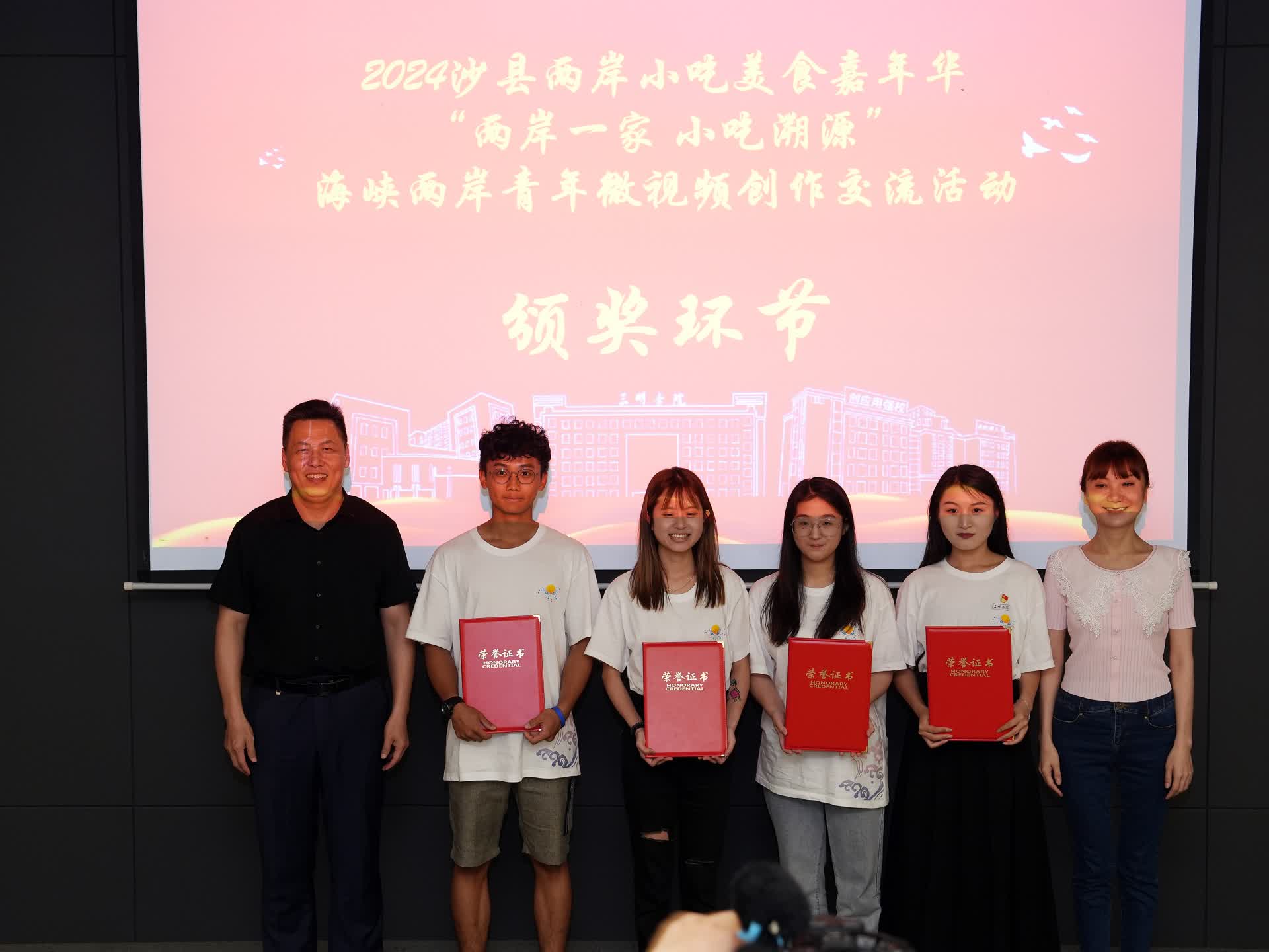 现场还进行了研学视频展示和交流活动。两岸师生组建16个团队,通过影像记录沙县的风土人情,从创意构思、素材拍摄和剪辑制作等方面激发创新思维,创作16个优质视频作品进行逐一展示。展示过程中,两岸青年学子们争先恐后上台分享自己的研学感悟。来自台湾铭传大学的蔡耀纬同学说:“在yl6809永利官网的研学体验,让我们在大陆的旅程更加多彩和难忘。”我校文化传播学院蒋晓艳同学表示,“通过这次活动,加强了我们与台湾青年的交流合作,展现出了两岸青年间的深厚友谊和心灵契合,让我们体会到两岸一家亲的浓浓情意。”