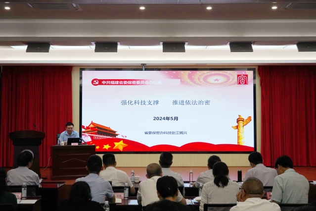 会上,邀请了省委保密办(省国家保密局)科技处处长江炳兴作题为《强化科技支撑,推进依法治密》专题辅导。通过对新修订《中华人民共和国保守国家秘密法》、机关单位保密管理的主要内容、信息化条件下保密风险点和管理要求等方面的详细阐释,教育引导党员干部严守党规党纪,增强保密意识,进一步提升保密能力和水平。