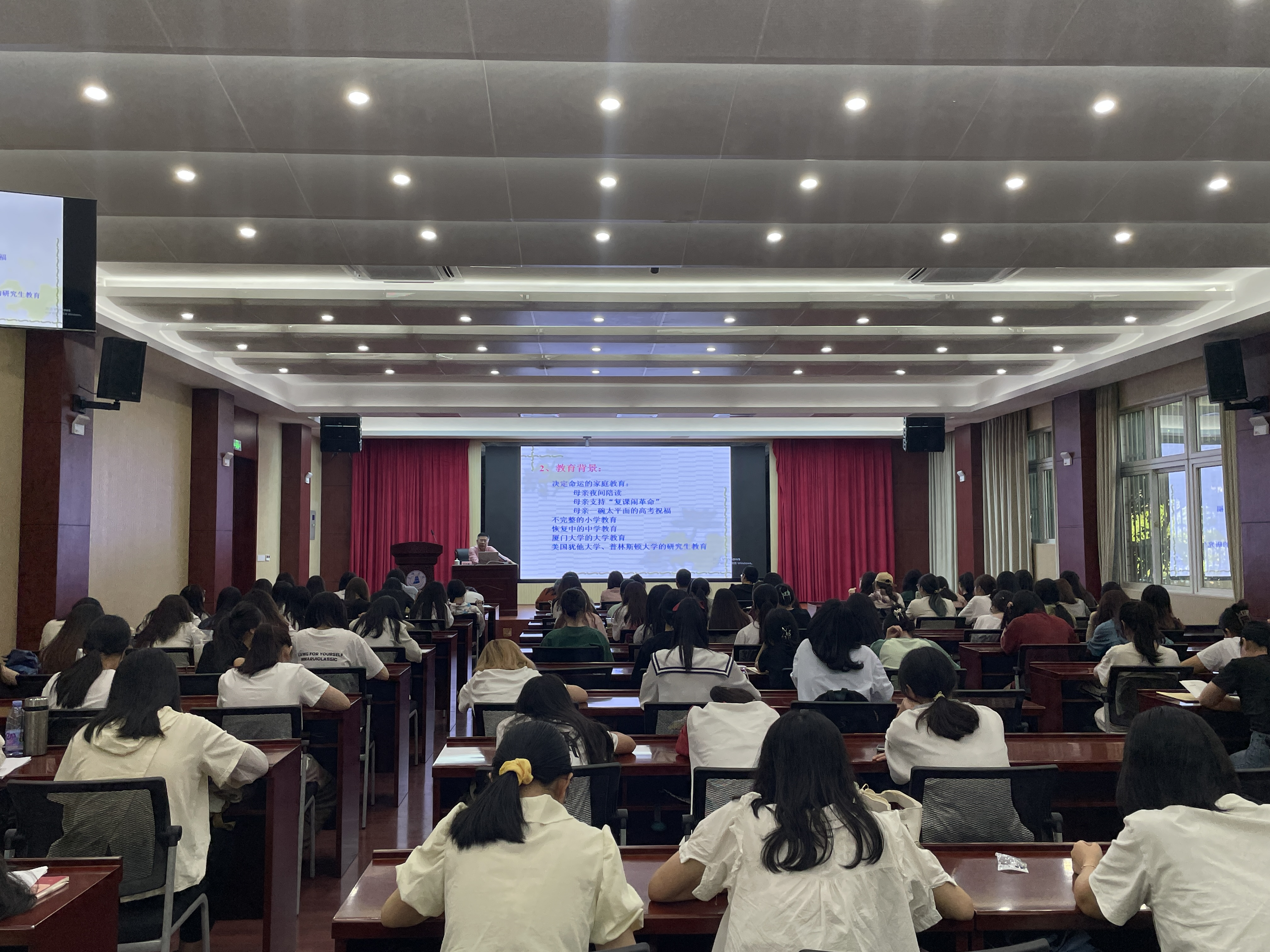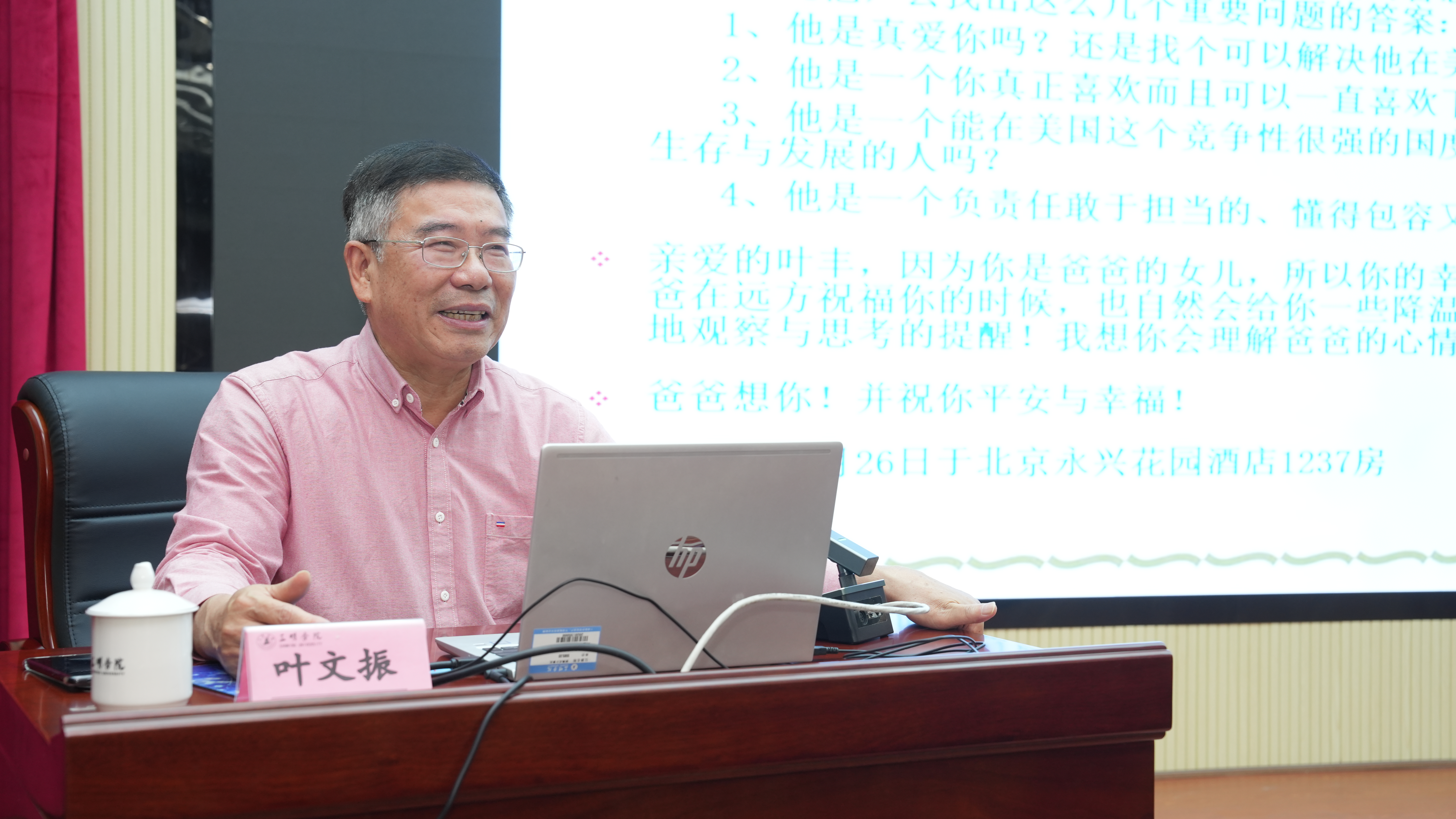 叶文振教授围绕“选择的意义与行动——三代大学生的经历与启示”主题,以一位“85后”电商老总、女性优秀创业者林红梅选择返乡就业创业为切入点,结合自身和两个女儿的经历,深入浅出地阐述了50后、80后、00后大学生在人生道路上所面临的选择与决策,生动地展现了选择的重要性与影响力。他强调,女生要自强、要独立、要学会选择。一次重要的选择胜过千百次的努力,要选择一个健康的大学生活,来成就我们的人生。他鼓励大学生们在科学选择中把个人理想、社会需要与真才实学结合起来,以创新精神和实践能力不断充实自我,提升个人竞争力。