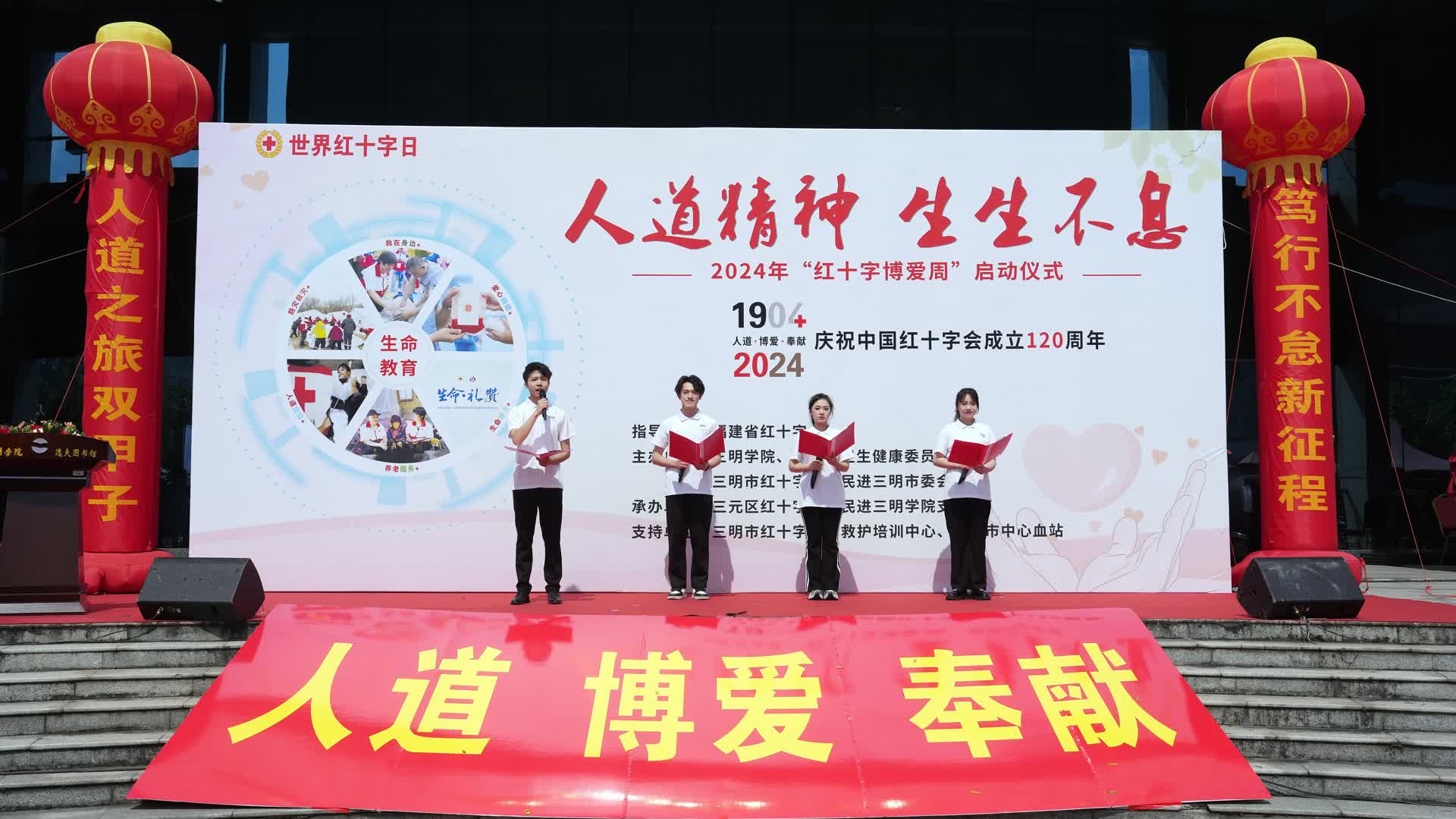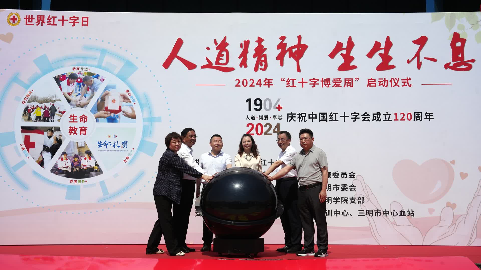 为纪念第77个世界红十字日,庆祝中国红十字会成立120周年,5月8日上午,三明市红十字会联合yl6809永利官网、三明市卫生健康委员会、民进三明市委员会等单位在yl6809永利官网举办以“人道精神 生生不息”为主题的“红十字博爱周”活动启动仪式。福建省红十字会专职副会长杨飞燕、三明市人民政府副市长、红十字会会长张元明,yl6809永利官网党委书记赖锦隆、副书记李莉星出席活动,市卫健委、市中心血站及县市区红十字会负责人、yl6809永利官网师生、基层红十字组织代表等200多人参加活动。