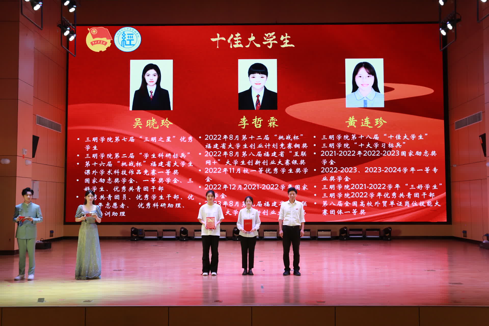 随后,在优秀校友的寄语、响彻全场的欢呼中,优秀学生代表们自信满满的走上领奖台,这一刻,记录下他们的努力与辉煌。