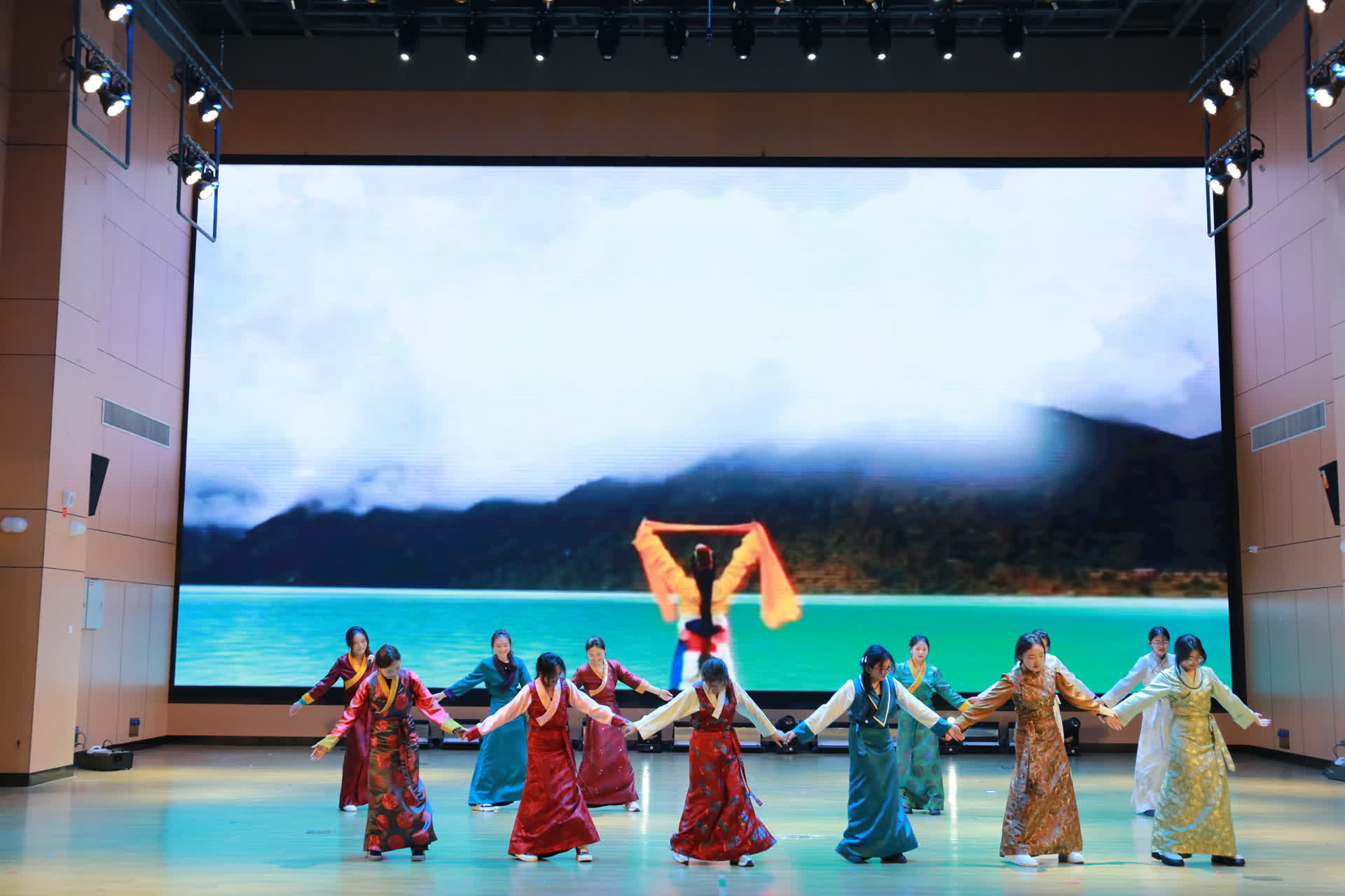 晚会分为三大篇章,十七个节目,分别为“峥嵘岁月,往昔足迹”、“奋楫笃行,逐梦遮光”和“扬帆起航 奋进明院”,每个篇章都紧扣主题,呈现出一场青春的盛宴。晚会开篇,华服秀《礼裳中华 锦绣宏图》为观众带来了一场视觉盛宴。五彩斑斓的华服如诗如画,每一件都承载着中华五千年的文明历史。舞者们身着华服,优雅地穿梭在舞台之上,仿佛带领观众穿越时空,领略中国优秀传统文化的博大精深与独特魅力。街舞《华夏》紧随其后,将现代元素融入传统,展现了青年学子对传统文化的热爱与传承,同时也彰显了他们的蓬勃朝气与无限可能;第二篇章:奋楫笃行,逐梦遮光。情景剧《平芜尽处是春山》以生动的演绎展示了学生们面对困难时的坚韧与乐观,他们不畏挑战,勇往直前,用青春书写着属于自己的精彩篇章。歌曲串烧《青春印记》更是唤起了大家对青春的无限怀念,每一首歌都代表着一个阶段的青春回忆,让人感慨万分;第三篇章:爱国情怀,共筑梦想。由台湾老师翁锦栋教授创作并领唱的歌曲《热血耀芳华》将晚会推向高潮,歌曲以激昂的旋律歌颂了祖国的大好河山,激起了在场每一位观众的爱国之情,他们用自己的歌声传递着对祖国的深深热爱和对未来的美好期许。