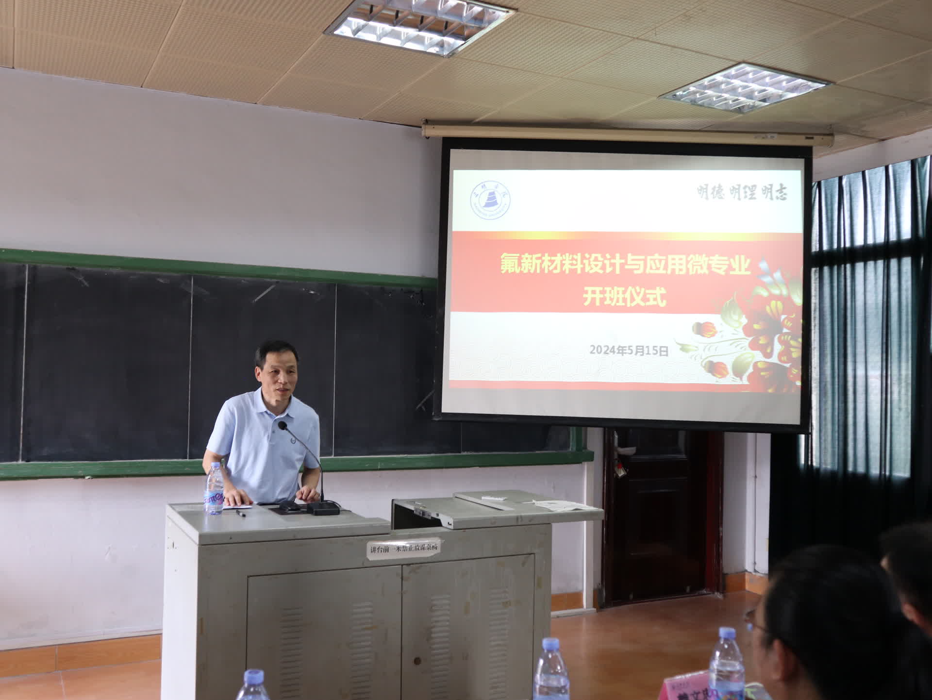 开班仪式上,院领导发表了开班致辞,对学校和教务处给予的大力支持和指导表示感谢,并介绍了“氟新材料设计与应用”微专业的开设目的意义。他强调了微专业的特点,即小学分、精课程、高聚焦、跨学科、服务区域产业发展等特征,以及通过灵活、系统的培养提高学生知识结构的复合性,使学生具备相应的能力素养,提升与社会需求的匹配度,鼓励同学们在学习中不断探索、努力进取,成为未来氟新材料领域的优秀人才。
