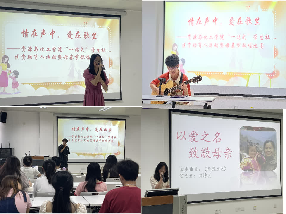 “花雨漫天飞扬,落在妈妈头上,飘在纺车上,给我幸福的故乡,永生难忘,永生永世我不能忘”,5月12日上午,工科楼传来美妙动听的歌声,资源与化工学院“一站式”学生社区和院勤工助学联合会联合举办“情在声中,爱在歌中”为主题的母亲节歌唱比赛,学院党委书记赖文忠教授、“一站式”学生社区导师、辅导员、各班学生、家庭经济困难学生代表参加。