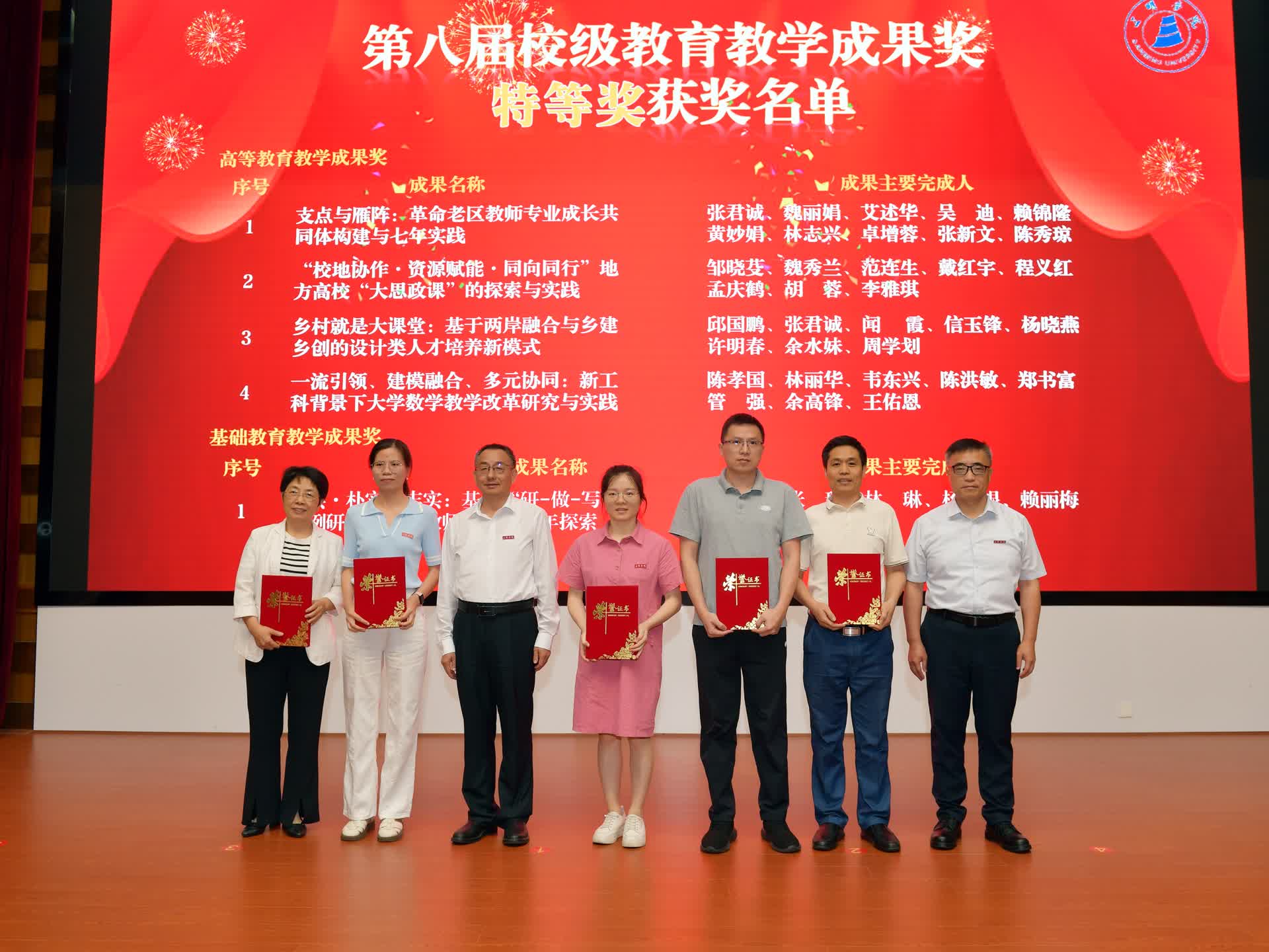 会上,廖景榕副书记宣读了《yl6809永利官网关于2022-2023年度教学工作先进单位和先进个人的表彰决定》《yl6809永利官网关于公布第八届校级教学成果奖获奖项目的通知》,全体校领导为获表彰人员颁发证书。会议还同时颁发了专业带头人培训班结业证书。教学工作先进单位代表资源与化工学院李奇勇院长、第八届教学成果奖特等奖获得团队代表陈孝国教授先后发言,分享了自己深耕本科教学多年的经验。