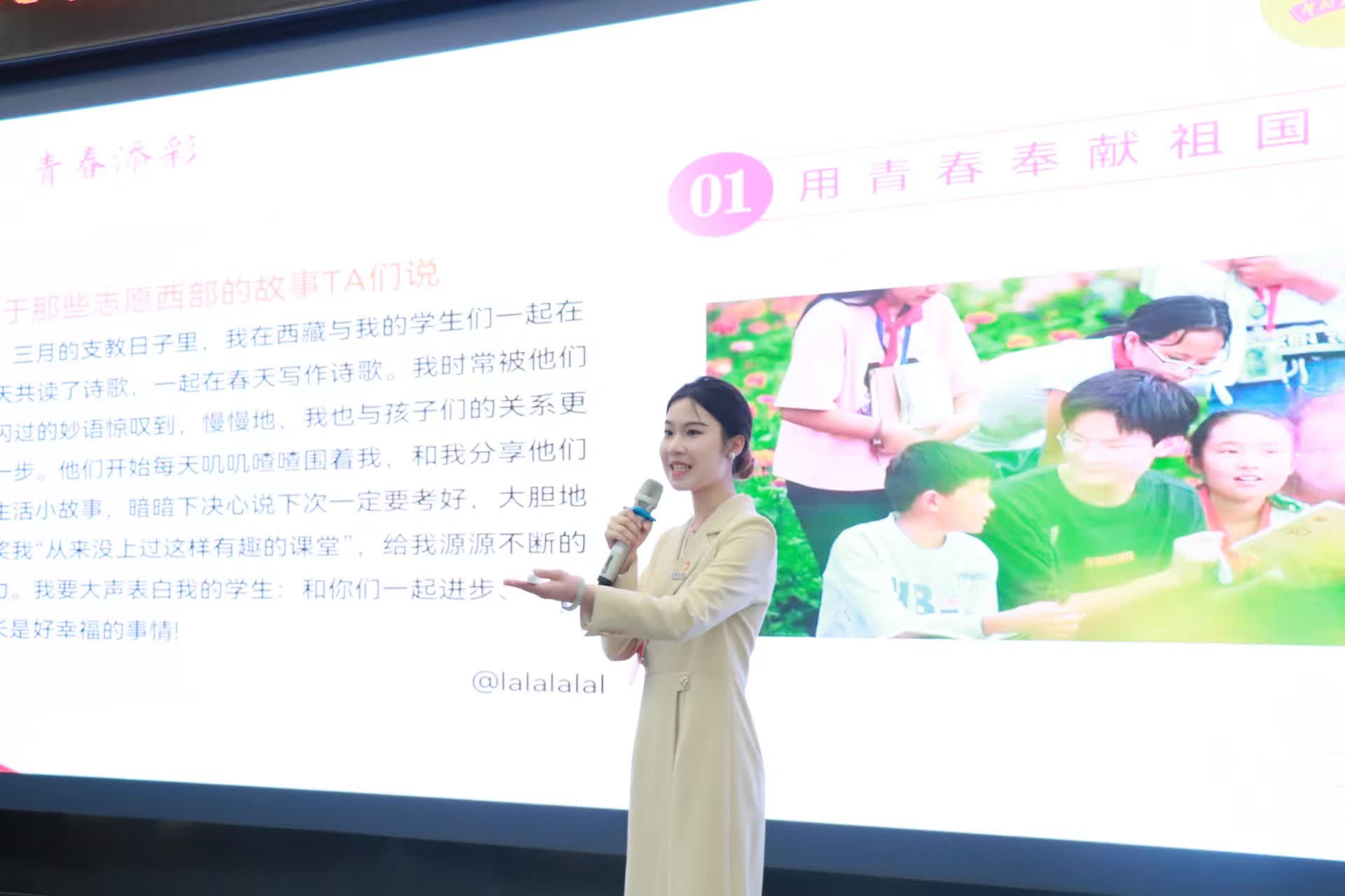 文化传播学院罗灵麟以列东中学西藏班和西部计划志愿者为例,讲述了援助西部地区、共同致力民族复兴的故事。她动情地说:“毕业后,我也想到西藏去,到基层去,到祖国和人民最需要的地方去,为一域增光,为全局添彩,为建设教育强国贡献出自己的青春力量!”