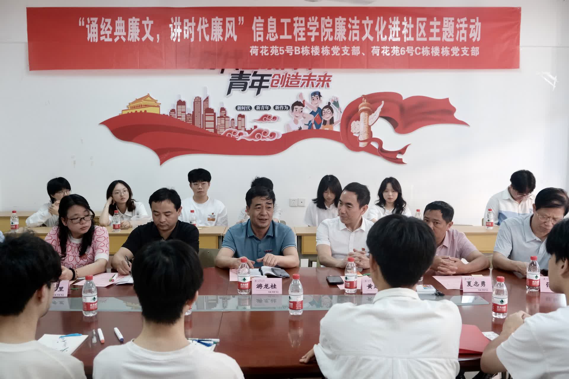 5月29日下午,校纪委与信息工程学院在荷花苑5号楼B栋“青年之家”活动室举办校园廉洁文化教育进“一站式”学生社区活动,纪检监察室党支部全体党员、信息工程学院师生代表到场参加。校党委委员、纪委书记游龙桂以普通党员身份参加活动。