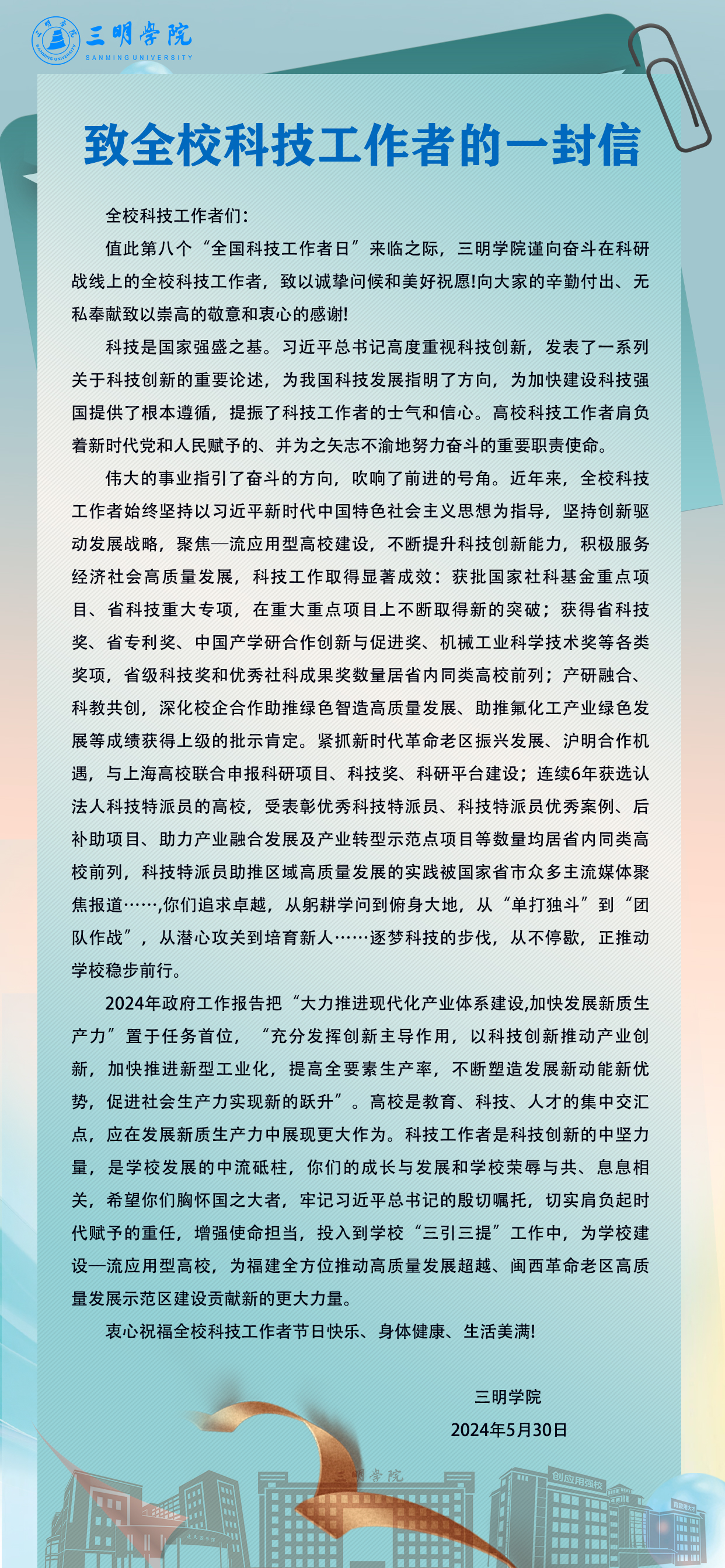 致全校科技工作者的一封信