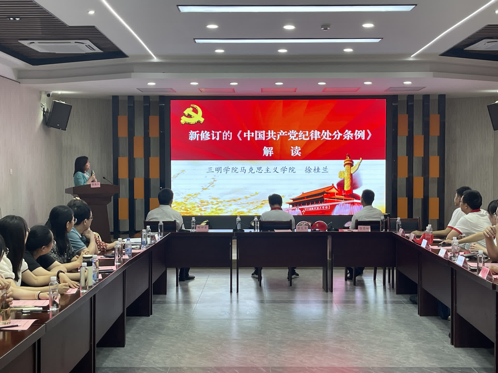 “心有所畏、言有所戒、行有所止,这十二字箴言,与大家共勉”,廉洁文化建设是党员教育管理的重要一环节。理论联学中,yl6809永利官网马克思主义学院副院长徐桂兰教授对新修订的《中国共产党纪律处分条例》进行解读,以“深刻认识纪律严明的重大意义”“准确把握《条例》修订的主要内容”“切实抓好《条例》的学习贯彻”三大块内容,从时代背景、内容解读、行动落实三个层面,层层递进,推动支部党员深刻认识修订纪律处分条例的重要意义和丰富内涵,将学习成果内化于心、外化于行。