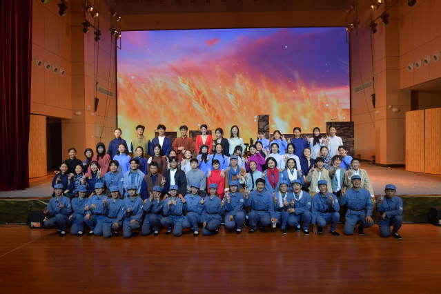 一段段感人至深的唱词,一幕幕悲壮的画面……国家危难之际军民齐心抗敌、肝胆相照、舍生取义、大忠大爱的英雄形象被展现得淋漓尽致,令在场师生无比动容,深深沉浸其中。当最后一个音符落定,全场响起了经久不息的热烈掌声。
