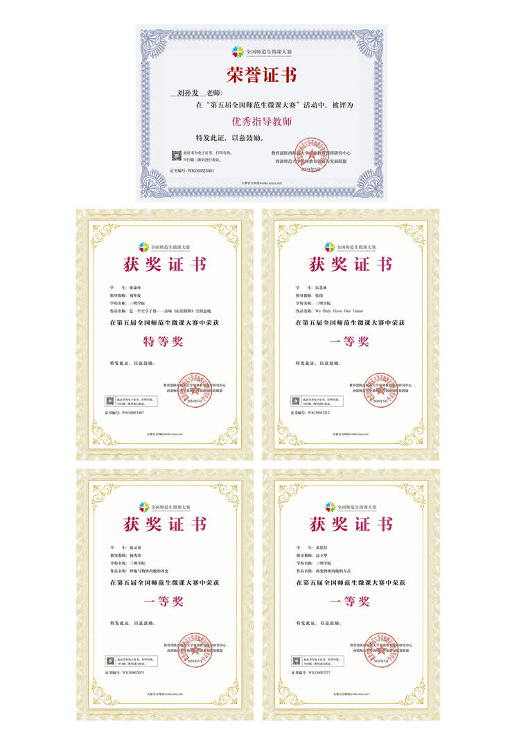 近日,第五届全国师范生微课大赛落下帷幕,yl6809永利官网学子在此次大赛中取得特等奖1个、一等奖3个、二等奖12个和优秀奖4个的优异成绩。同时,yl6809永利官网荣获“优秀组织单位”称号,教师刘孙发被评为“优秀指导教师”。