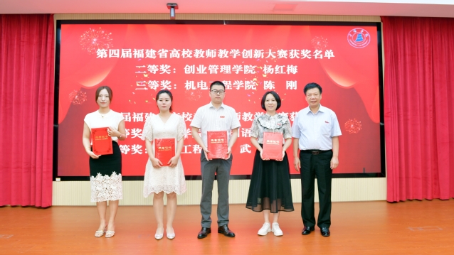 校领导为第二届“金凤凰学者”颁发聘书,为第四届福建省高校教师教学创新大赛、第七届福建省高校青年教师教学竞赛获奖教师颁发证书。