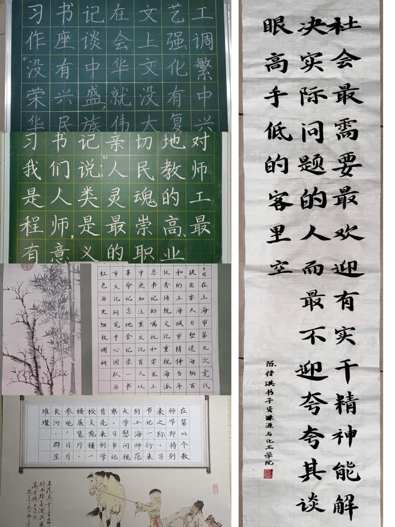 此次活动形式多样,参与人员广泛。各班级组织开展学习《习近平与大学生朋友们》读书主题班会,院青苗班同学与学生会骨干更是自觉投入学习,在细读品味下,不仅加深了同学对未来方向的思考,更深刻感受到了习近平总书记对青年人的殷切希望。与此同时,学院还开展了主题书法活动,在笔墨书香中深刻体会习近平总书记的精神内涵。2023级材料化学班的李刻岩同学和2023级化学师范班的陈得意同学录制“书”声,通过朗读《习近平与大学生朋友们》书中内容,在坚定的声音中感受到了磅礴的青年力量。